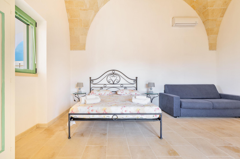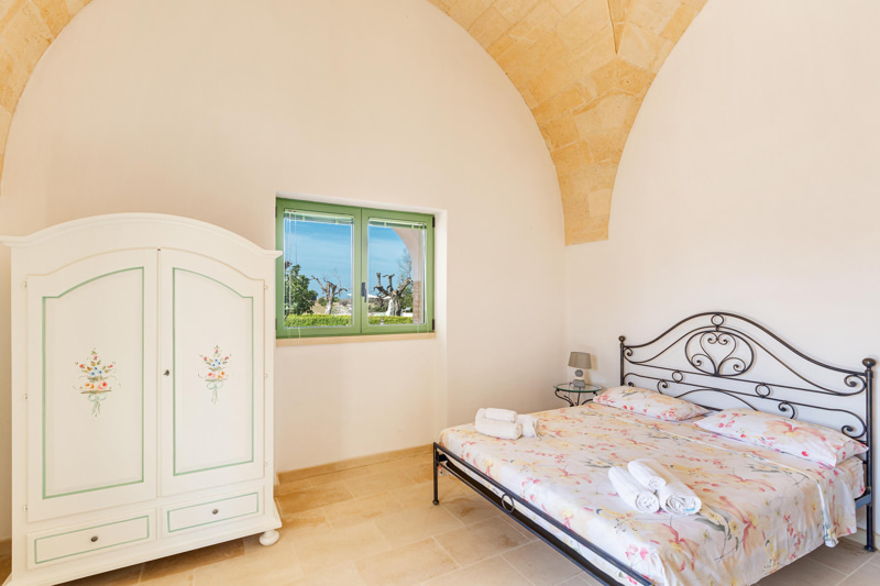 Il Cappero consists of two large adjoining rooms, each with a star-shaped stone roof, separated by a casket door, totalling 55 square metres. Each of the two rooms is furnished with a wrought-iron double bed, a sofa bed, wardrobe fridge, coffee table and chairs. Finally, a bathroom with all amenities.